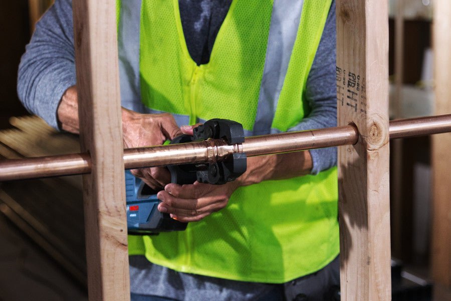 The Bosch GPT18V-24 Press Tool delivers quick , removing the need to drain water out of pipes before joining. The compact design and rotatable head help workers access tight spaces with greater ease. With a powerful clamping force, get reliable full connections in ½ In. to 1-1/4 In. pipes about 3 seconds per press cycle. Equipped with an LED status indicator for operating feedback and an LED worklight to help illuminate dark, hard-to-see workspaces. The electronic motor protection feature helps protect the motor from overload and the battery cage helps reduce impacts on the battery. Use with our complete line of Bosch press jaws for a range of pipe sizes and materials. Also compatible with Rothenberger press jaws for greater flexibility.