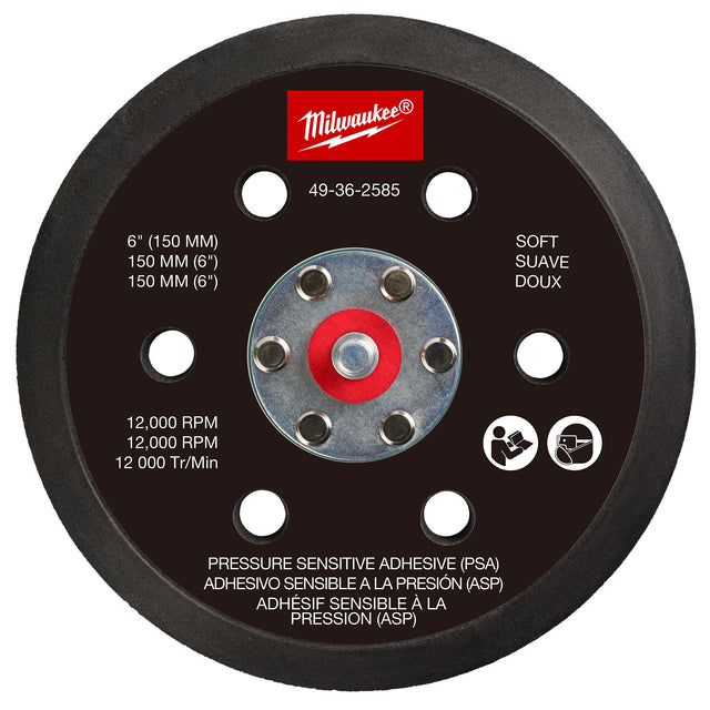 Milwaukee 49-36-2585 6" Pressure Sensitive Adhesive Random Orbital Sander Backing Pad - Soft