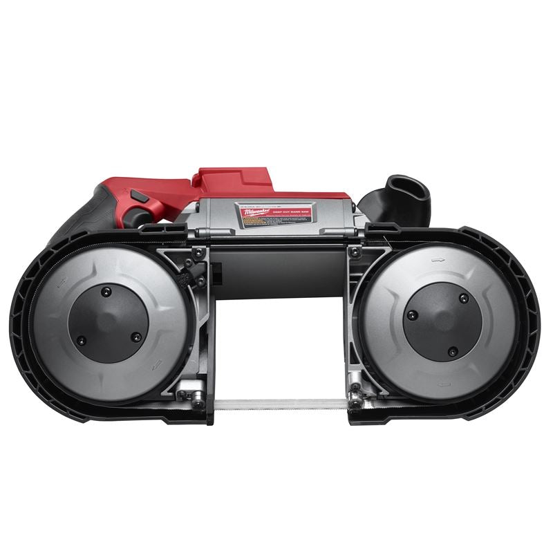 The M18 FUEL band saw cuts faster than its corded counterparts, provides the same legendary durability of a Milwaukee corded band saw, and delivers up to 2X more run time than other cordless options. Utilizing a POWERSTATE brushless motor and Constant Power Technology, the M18 FUEL deep cut band saw cuts faster than corded band saws. It also delivers the same legendary durability that has made Milwaukee corded deep cut band saws second to none for decades by utilizing over 90% of the same parts. Equipped with Jobsite Armor Technology, the tool is better protected from drops and debris with a proprietary composite material and crush zone barriers to absorb impacts. REDLITHIUM XC5.0 Battery technology provides up to 2.5X more run-time through superior pack construction, electronics, and more work per charge over the life of the battery than any competitive lithium-ion battery on the market. REDLINK Plus intelligence has the most advanced system of cordless power tool electronics, providing optimized performance, electronic clutch, and overload protection using total system communication between tool, battery, and charger. The M18 FUEL deep cut band saw features a tool-free locking adjustable shoe that can adjust from an extended shoe to no shoe in seconds. Other innovative features include a hanging hook for easy storage in-between cuts, LED light to illuminate the cutting area, superior cut visibility, and a balanced body design that allows the tool to rest naturally and comfortably in the users hands.
