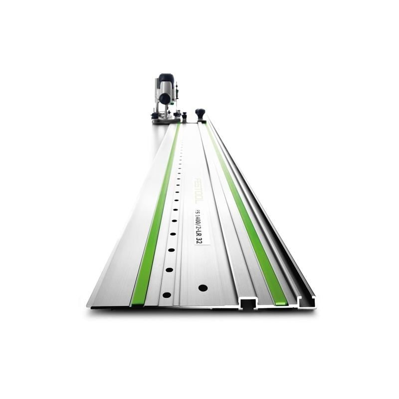 The FS FS 2424/2-LR 32 Guide Rail (95 inches) was designed specifically for use with Festool Routers and the LR 32 Hole Drilling System to construct cabinets using the European frameless 32mm system for shelf pins and hardware. Also, use the LR 32 System for line boring, or setting shelf pins in panels up to any length. Festool FS Guide rails are available in eight different lengths from 32 inches to 197 inches (800 - 5000 mm), providing the right rail for every application. For cutting applications, the integrated splinterguard aligns perfectly to your cut line, saving set up time and serving as protection against tear out, on cuts both with the grain and across. Guide rails can be easily connected using the accessory guide rail connectors for a rigid, secure and continuous connection. Guide rails make work easier by taking the tool to the work, and save time and money by eliminating laborious measurements, rework and wasted material. Use the FS 2424/2-LR 32 Guide Rail (95 inches) with the Festool Plunge cut saw to cut material up to 89 inches. Connect rails using Festool Guide Rail Connectors to make limitless cuts.