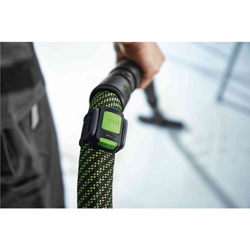 The combination of Bluetooth® module on the CT Dust Extractor and remote control on the extractor hose saves you a trip to the extractor. Simply start the dust extraction from the hose using the remote control. Ideal for small, occasional cleaning tasks - simply switch to cleaning mode, even when the CT Dust Extractor is in AUTO mode. The Bluetooth® module on the CT Dust Extractor communicates with the Festool Bluetooth® battery packs in addition to the new remote control. These battery packs ensure that even a cordless tool starts the CT Dust Extractor automatically when switched on. This now enables you to benefit from Festool's entire dust-free system when working with Festool cordless products too.