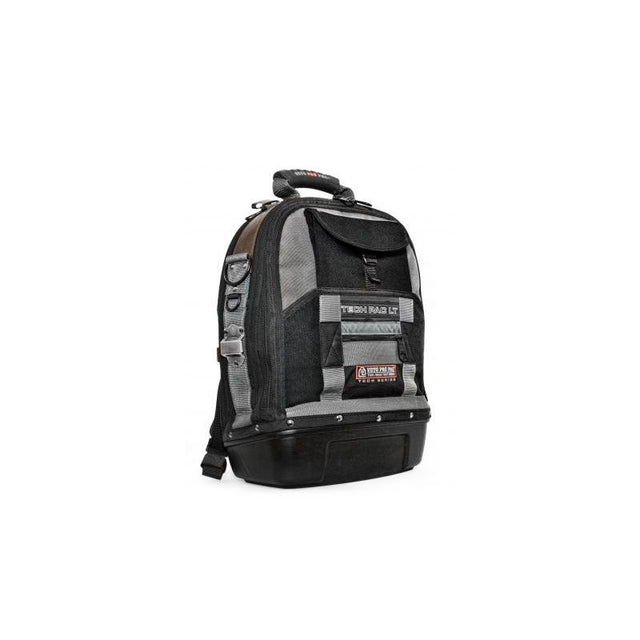 The Tech Pac is the ultimate laptop backpack tool bag designed for professional service technicians. Designed to enable the safe and comfortable transport of a variety of tools and a laptop and/or tablet when servicing equipment accessible by extension or cage ladders, in cities or industrial buildings where walking long distances is required and in residential settings where going up and down stairs frequently is part of the job, the Tech Pac LT features a center panel, heavy duty construction and a stabilizing injection molded waterproof base that allows technicians to organize and access their tools quickly and protects their tools and technology. With 27 pockets inside and out, the Tech Pac LT has ample room for hand tools, cable wires, a laptop, tablet and business accessories and more. The Tech Pac LTs center panel design offers dual bays with two storage platforms in each bay. The center panel design with the main tool storage options on each side centers and stabilizes the backpack. It also includes D-rings, extra pockets on the top of the front side, and a stainless steel tape clip. The Tech Pac LT is also made for comfort with a thermo-formed EVA padded back panel that helps cushion the load (which also provides structural stability), a padded load displacing shoulder strap system with multiple adjustment strap points and an ergonomic TPV rubber grip.