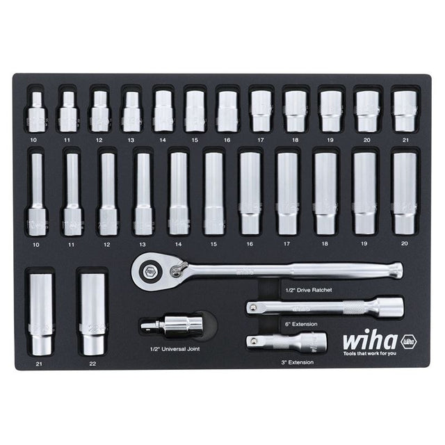 WIHA 33395 27 Piece 1/4†Drive Professional Socket Tray Set - Metric