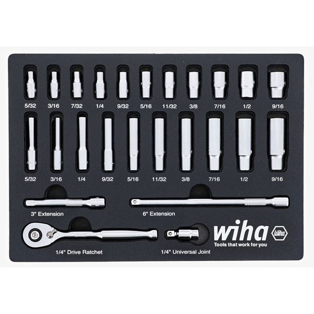 WIHA 33396 25 Piece 1/4†Drive Professional Standard and Deep Socket Tray Set - SAE