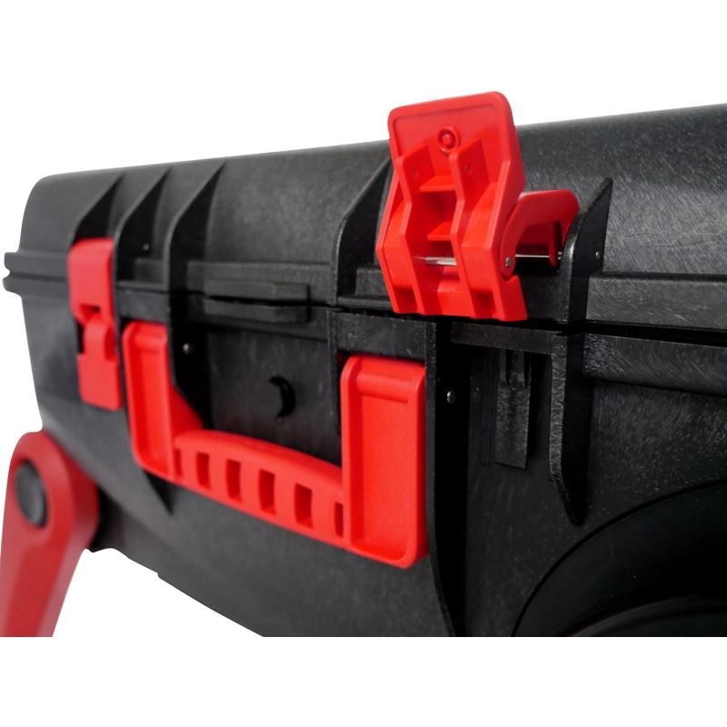 Heavy-duty construction, all-terrain wheels, large secure storage