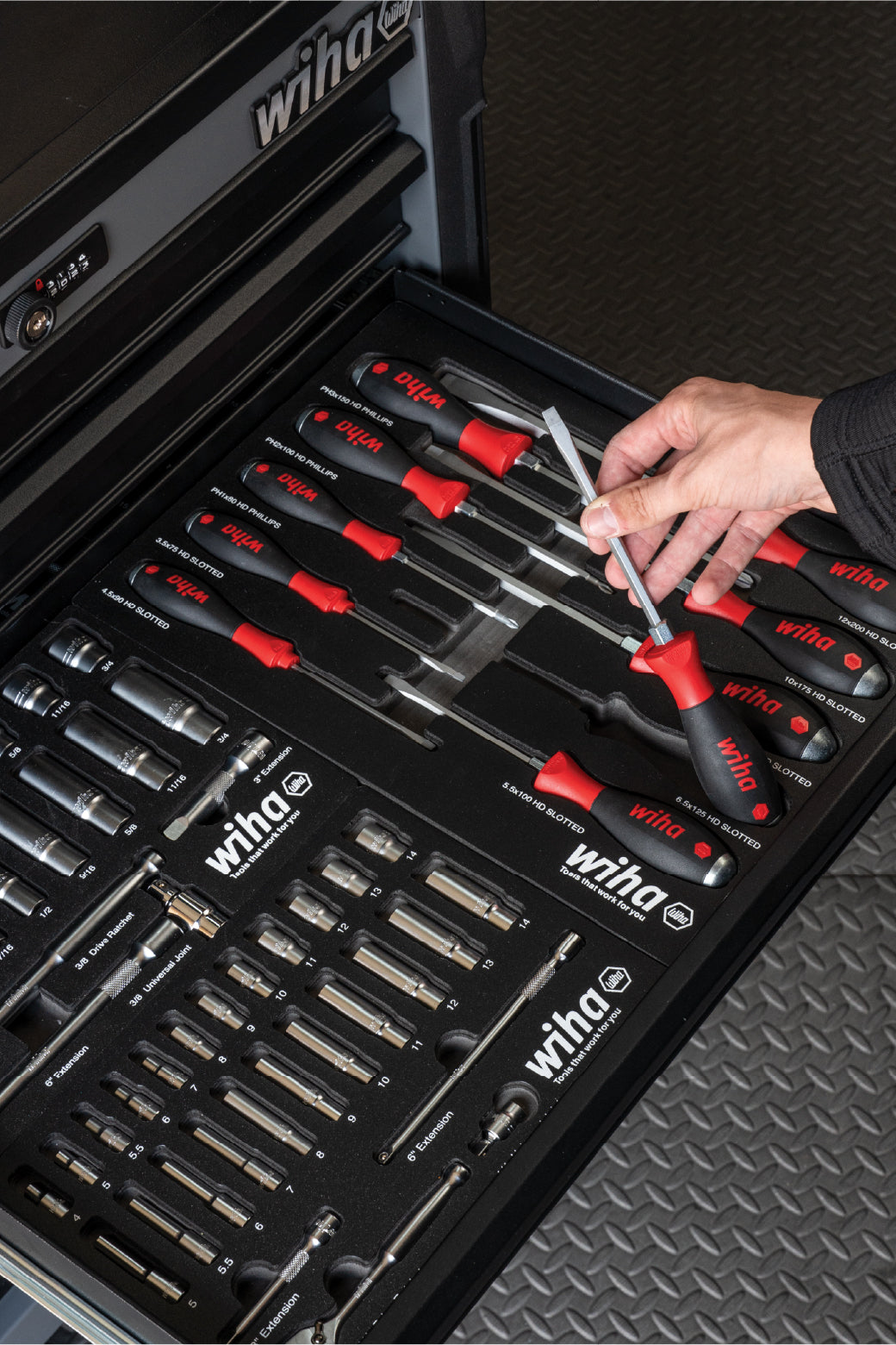 - Sophisticated compartment system ensures clearly structured organization and easy removal of the tools