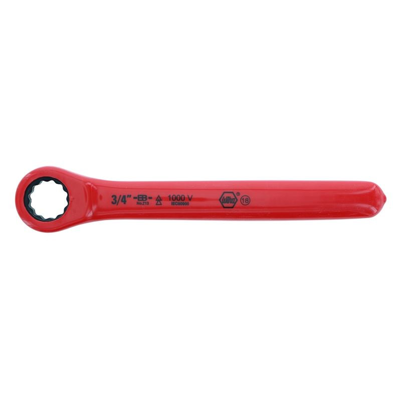 Insulated Ratchet Wrench 3/4in x 209mmInsulated 1000 Volt Rated 10,000 Volt Tested Meets ASTM F1505, EN/IEC 60900, NFPA-70E, CSA, VDE, Insulation specificationsProfessional Series Long Life InsulatedIndividual Inch & Metric Sizes & Sets12 Point Wrench, Precision GearedDouble Covered Insulation Red Over YellowGuaranteed Quality - Made In Germany