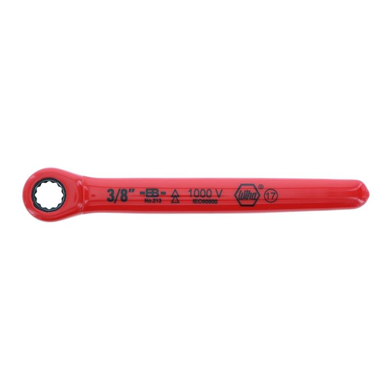 Insulated Ratchet Wrench 3/8in x 140mmInsulated 1000 Volt Rated 10,000 Volt Tested Meets ASTM F1505, EN/IEC 60900, NFPA-70E, CSA, VDE, Insulation specificationsProfessional Series Long Life InsulatedIndividual Inch & Metric Sizes & Sets12 Point Wrench, Precision GearedDouble Covered Insulation Red Over YellowGuaranteed Quality - Made In Germany