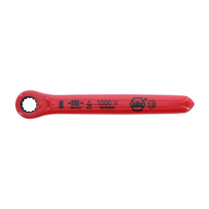 Insulated Ratchet Wrench 8mm x 125mmInsulated 1000 Volt Rated 10,000 Volt Tested Meets ASTM F1505, EN/IEC 60900, NFPA-70E, CSA, VDE, Insulation specificationsProfessional Series Long Life Insulated12 Point Wrench, Precision GearedDouble Covered Insulation Red Over YellowGuaranteed Quality - Made In Germany
