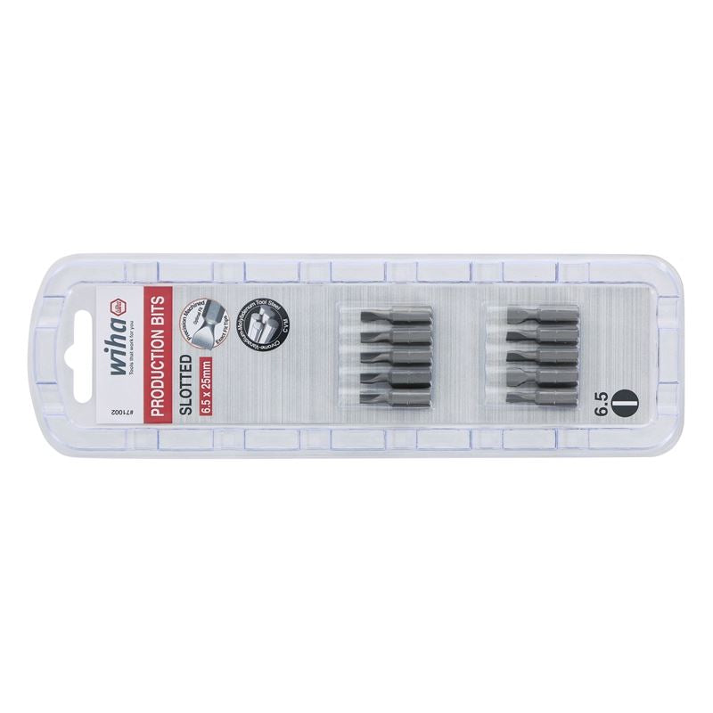 Wiha Slotted Insert Bit 6.5 x 25mm Pack of 10 Bits
