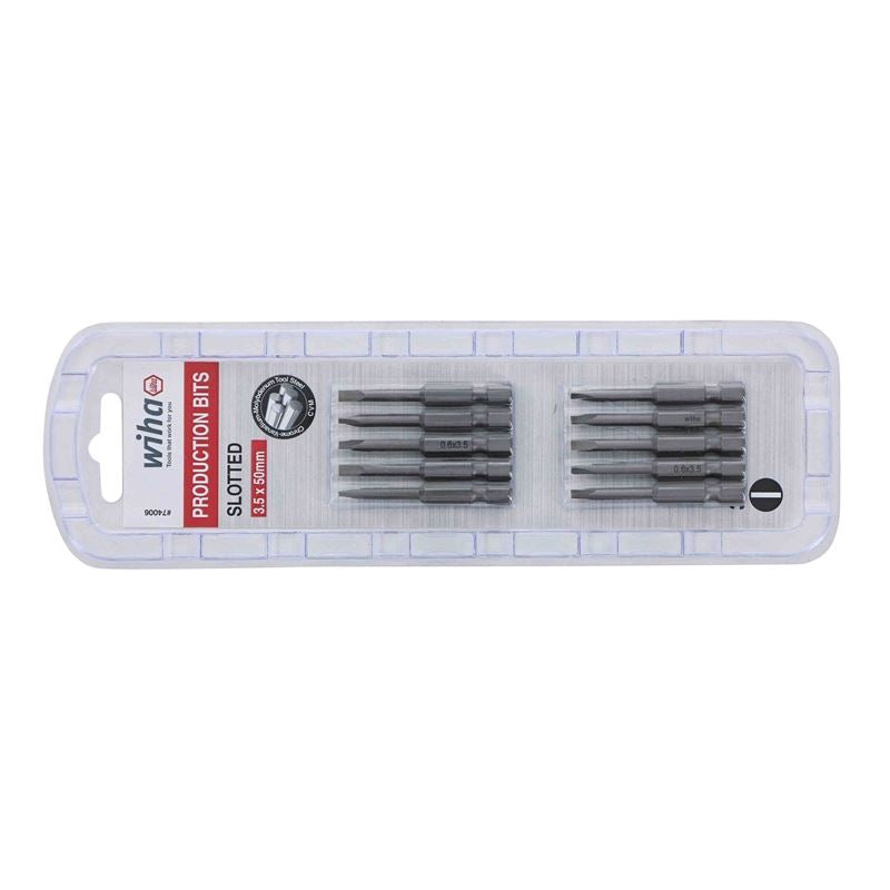 Wiha Slotted Power Bit 3.5 x 50mm Pack of 10 Bits