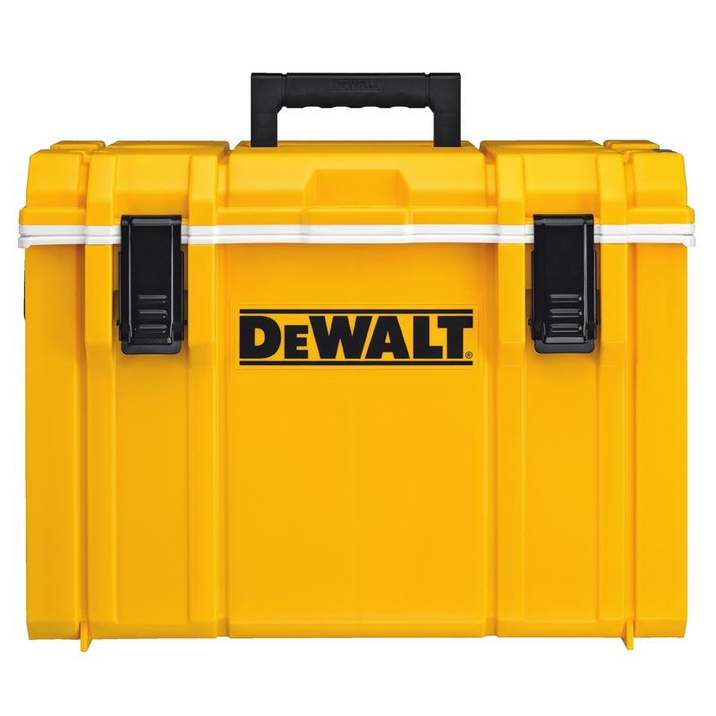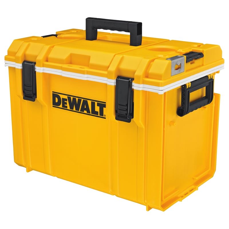 With extensive storage space of 27 quarts, 5 days ice retention, and IP65 rating for protection against water and dust, this DEWALT ® ToughSystem ® Cooler keeps beverages ice-cold and refreshing, no matter the external conditions. The cooler can be stacked to any other ToughSystem ® module using the side latches, and is compatible with the ToughSystem Trolley, our Van Racking, and Workshop Racking for ultimate stability and security during transit.