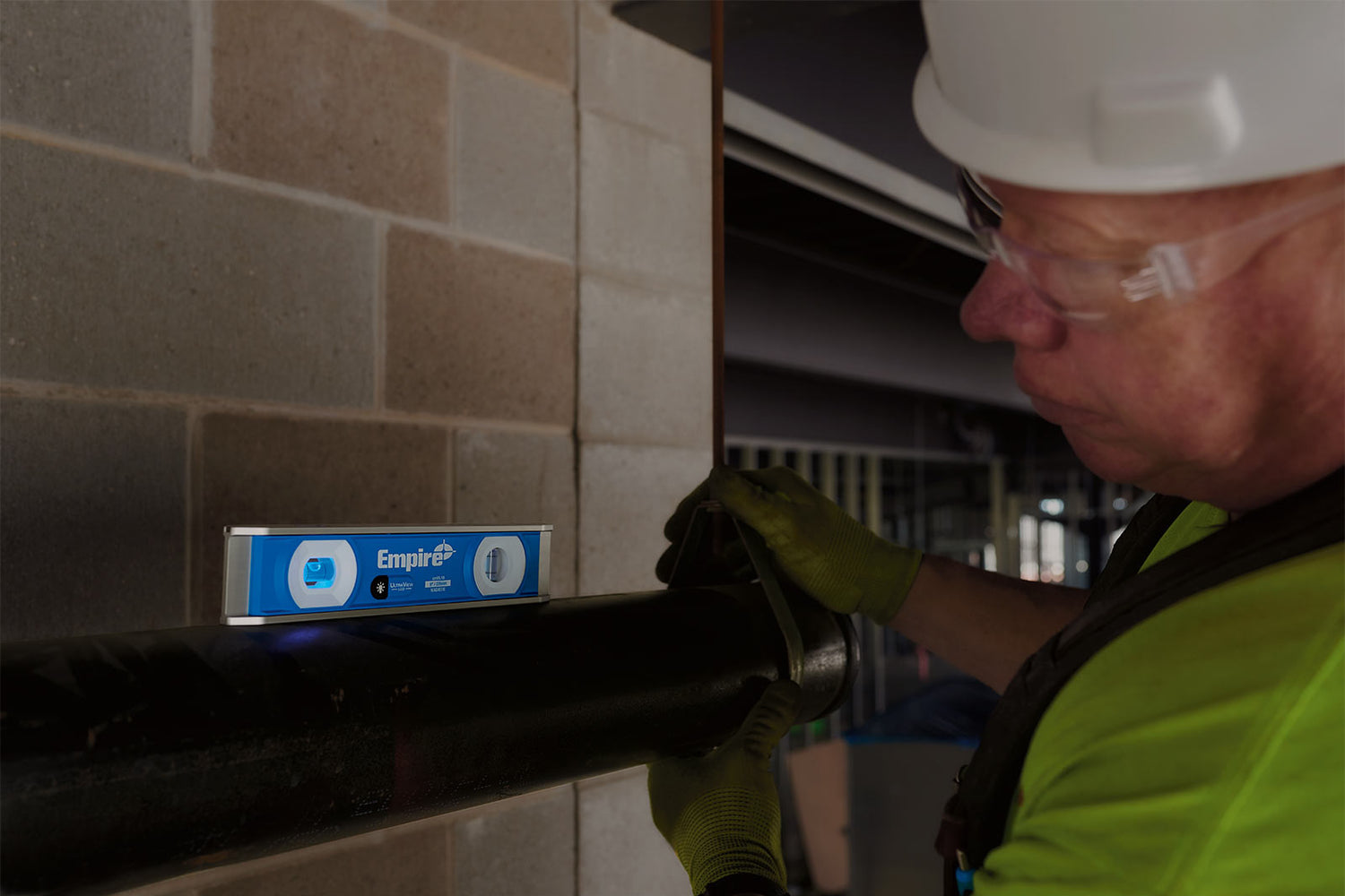 The Empire EM95.48 48" TRUE BLUE® ULTRAVIEW™ LED Box Level offers surface grippers for a secure grip and e-BAND™ vials made in the USA for accurate readings. With a 2 minute auto shut-off or press and hold option, it conserves battery life. Plus, a hang hole allows for easy storage. Includes a limited lifetime warranty on frame and vials, and 1 year on electronics. 2 (AA) batteries included.