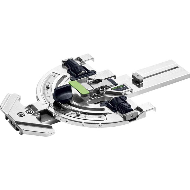 The angle stop for the guide rail - for precise and fast angled cuts. Angles of -60 Degrees to +60 Degrees can be set with repeatable accuracy and high precision. The angle stop offers a wide range of applications and full flexibility. Thanks to the quick-clamping lever, the angle stop is attached to the guide rail in an instant and without tools. Designed for the FS/2 rails.Includes: