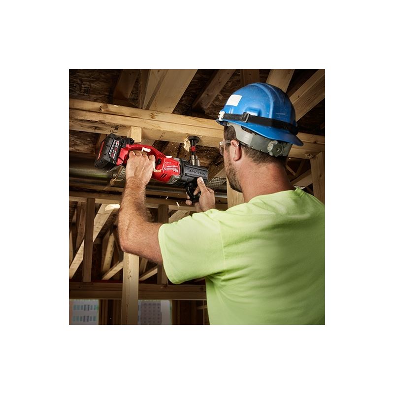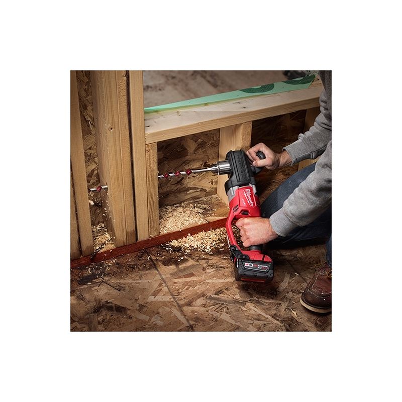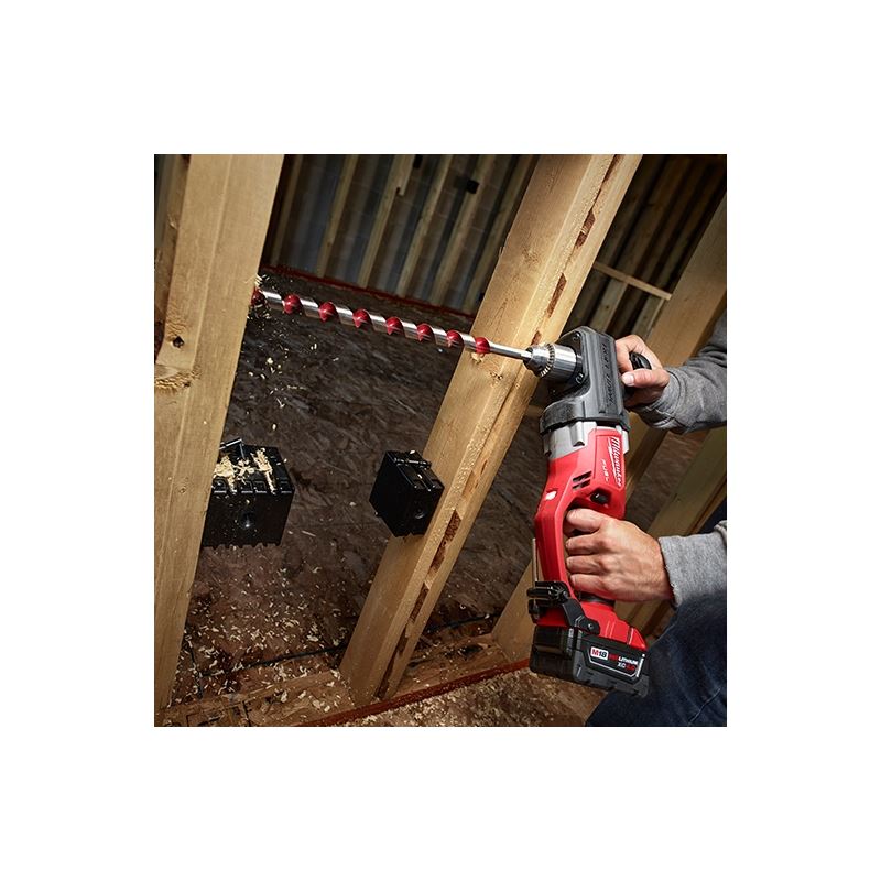 The M18 FUEL HOLE HAWG 1/2" Right Angle Drill from Milwaukee drills faster than the original corded HOLE HAWG, Delivers over 150 7/8" Holes Per Charge, and is over 30% lighter weight than its corded predecessor. Optimized for electricians, the M18 FUEL HOLE HAWG is the first cordless tool of its kind, Delivering Game-Changing productivity for professionals drilling with augers up to 1 - 1/4" and Self-Feed bits up to 2".