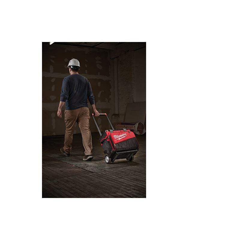 The Milwaukee 18 Jobsite Rolling Bag was designed with professional tradesman in mind and built to be the most durable and provide the most versatility of any rolling bag in the industry. Featuring 6 All-Terrain metal rimmed wheels and the industrys strongest extension handle, the 18