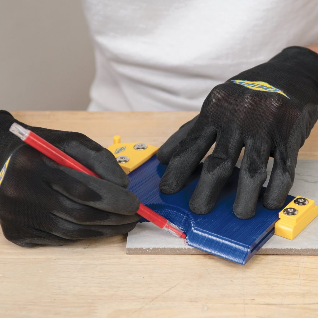 Great for marking precise cutouts in vinyl, wood, porcelain and ceramic tiles