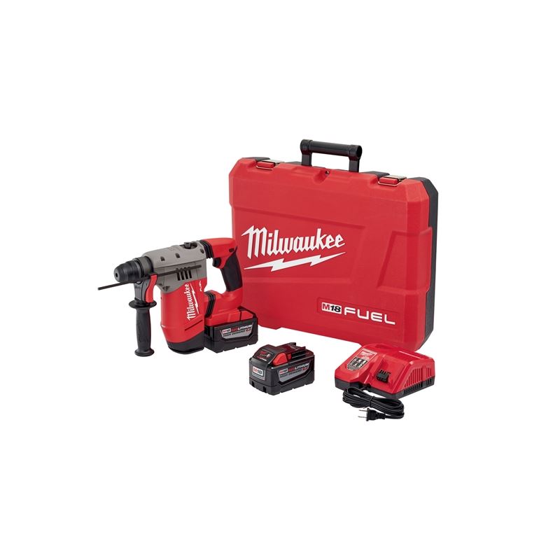 Powered by FUELtechnology, the M18 fuel1-1/8 in. SDS plus rotary hammer delivers faster than corded speed, corded durability, and all day work on one charge. The Milwaukee POWERSTATEbrushless motor provides 3.3 ft-lbs of impact energy, 0-1, 350 RPM and 0-5,000 BPM. The M18 REDLITHIUM HIGH DEMAND 9.0 battery pack delivers up to 5X more run-time, 35% more power, and runs 60% cooler than standard 18 V lithium-ion batteries. It maintains full power and runs substantially cooler through heavy applications, allowing users to push their cordless tools harder and longer than ever before. The M18 REDLITHIUM HIGH DEMAND 9.0 battery is fully compatible with 100+ M18 tools.