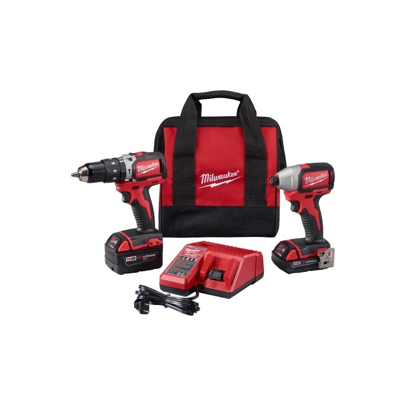 The 2799-22CX M18 2-Tool Combo Kit includes the 1/2 Compact Brushless Hammer Drill Driver (2702-20) and the 1/4 Hex Brushless Impact Driver (2750-20). The M18 Cordless System's patented technologies and electronics, innovative motor design, and superior ergonomics provide the most efficient blend of power, weight and performance in the industry. The M18 Compact Brushless Hammer Drill/Driver is the Most Compact 18v drill on the market and delivers Over 50% Longer Run-Time than drills with brushed motors. The M18