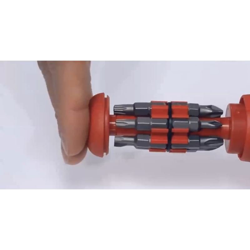 12-In-1 Pop-Up Bit Holder Set 13 Pc. Slotted 4.5, 5.5, 6.0mm, Phillips #1, 2, 3, TORX T6, T15, T20, T25 Security Torx T8s, T10sCompact Magazine screwdriver for Industrial applications Especially for mobile applications Handle Ergonomic Wiha SoftFinish multi-component handle with roll-off protection Cushioned Grip For maximum comfort and power Internal Magazine accommodates 12 common 1/4in Bits 1/4in Magnetic Bit Holder Bits: Slotted: 4.5, 5.5, 6.5mm Phillips: #1, #2, #3 Torx: T6, T15, T20, T25 Security Torx T8s, T10s Wiha premium bits - exact fit precision machined Universal fit for all standard bit holders & power tools Wiha special chrome-vanadium-molybdenum tool steel Through hardened for best wear resistance